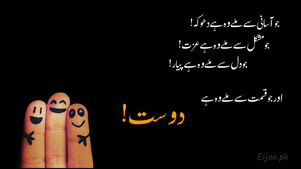 Jo Asani se Mile Wo Hai Dhoka! Jo Mushkil Se Mile wo Hai Izzat! Jo Dil Se Mile wo hai Pyar! Aur Jo Naseeb Se Mile wo hai Dost.